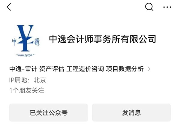 中逸會計師事務所有限公司公眾號正式運行,公眾號是“中逸會計師事務所有限公司”,歡迎各位好友關注。